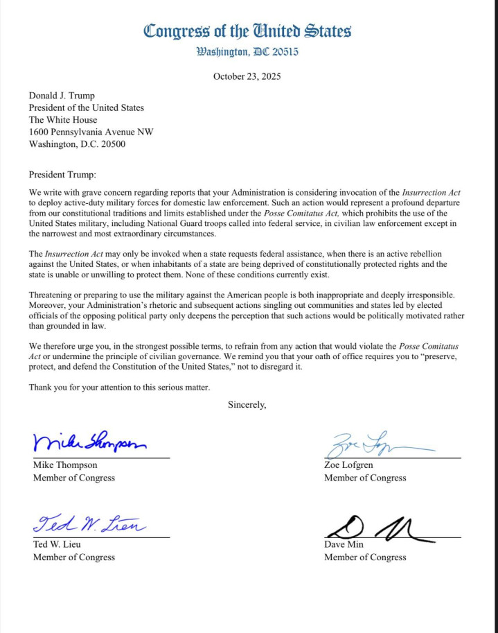 在陆军老兵 RepThompson 的带领下,国会退伍军人与其他议员一起谴责特朗普威胁使用军队对付美国人民。